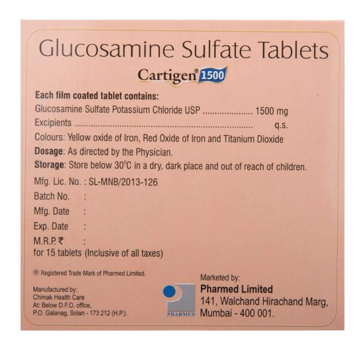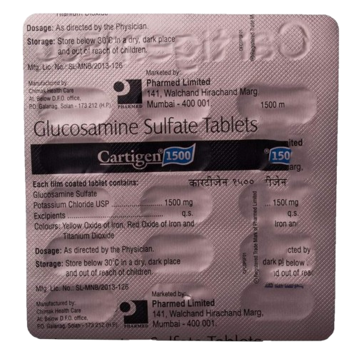 Картиджен Cartigen 1500 мг — является источником глюкозамина , полезного компонента для суставов и связок , а также улучшающий сращивание костей. Глюкозамин не только способствует восстановлению полноценного эластичного и упругого хряща, он стимулирует процессы регенерации связок и улучшает подвижность суставов. Благодаря усилению образования суставной жидкости в специальной сумке, уменьшается трение хрящевого сустава, восстанавливается подвижность конечностей и работа опорно-двигательной системы всего тела. Глюкозамин стимулирует в организме выработку таких важных компонентов как коллаген, гиалуроновая кислота и хондроитина сульфат. Долгосрочные исследования указывают что глюкозамин задерживает разрушение суставного хряща возможно путем сдерживания катаболических ферментов. Клинические исследования показали что глюкозамин облегчает боль после 4 недель лечения и улучшает мобильность пораженных суставов у пациентов с нетяжелым остеоартритом.